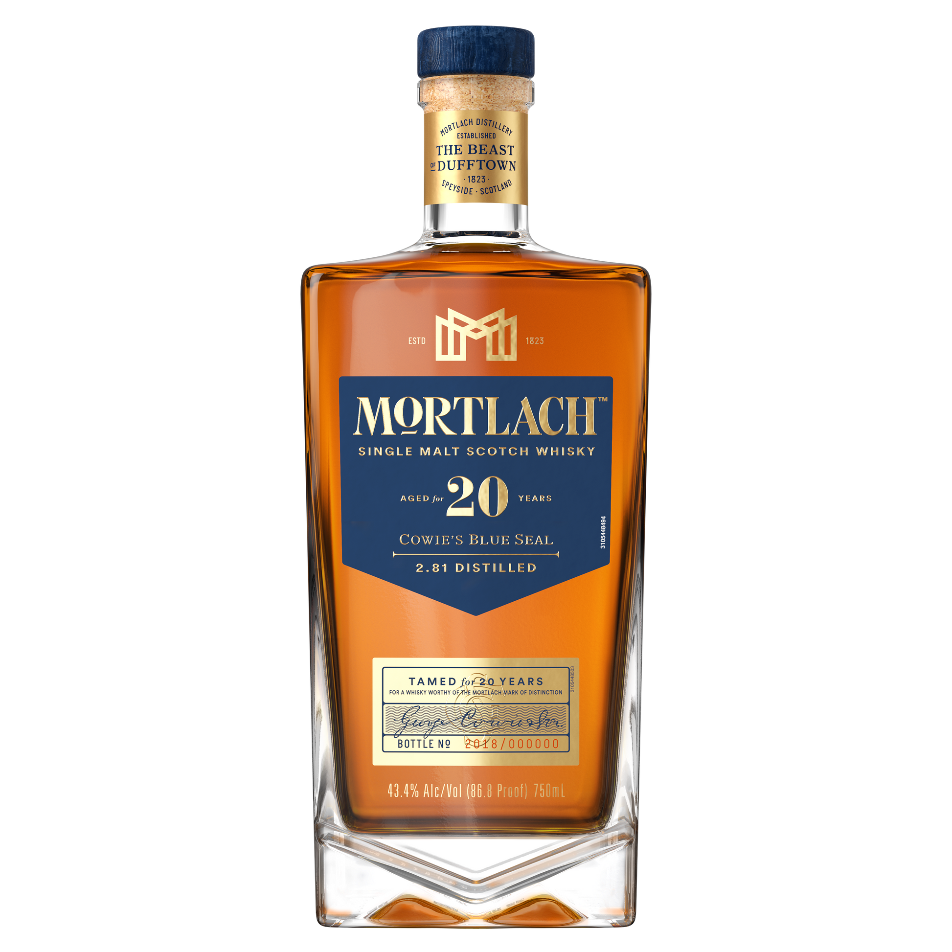 Tamed for 20 years for a whisky worthy of the Mortlach mark of distinction. 1973. Glenrinnes Lodge. The daughter of the Mortlach mastermind makes a discovery. As her family home is renovated a wooden box is found. Within it, carefully packed in straw, are 12 bottles of whisky that have long been forgotten. They are her father Dr. Alexander Cowie’s private stock, a deliciously complex dram that dates back to 1909. Cowie had no doubt bottled the best that his distillery had to offer and graced it with a seal of deep blue, the colour of great distinction, the colour that now adorns every single bottle of Mortlach. This is a whisky to make Alexander Cowie proud. A reimagining of his Blue Seal, our very best Scotch, matured for a minimum of 20 years to tame ‘The Beast of Dufftown’ into smooth submission.